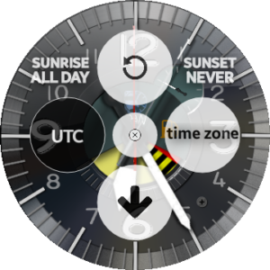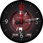 From the version 1.8, you can double tap at any time (except in the menu and the fuel page) the watchface screen to start/stop/reset the chronometer (the thin red hand).